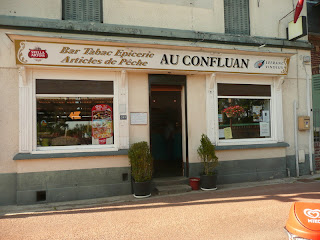 franse huizen in het dorp ....motorjacht vastgelegd aan de bloembak
